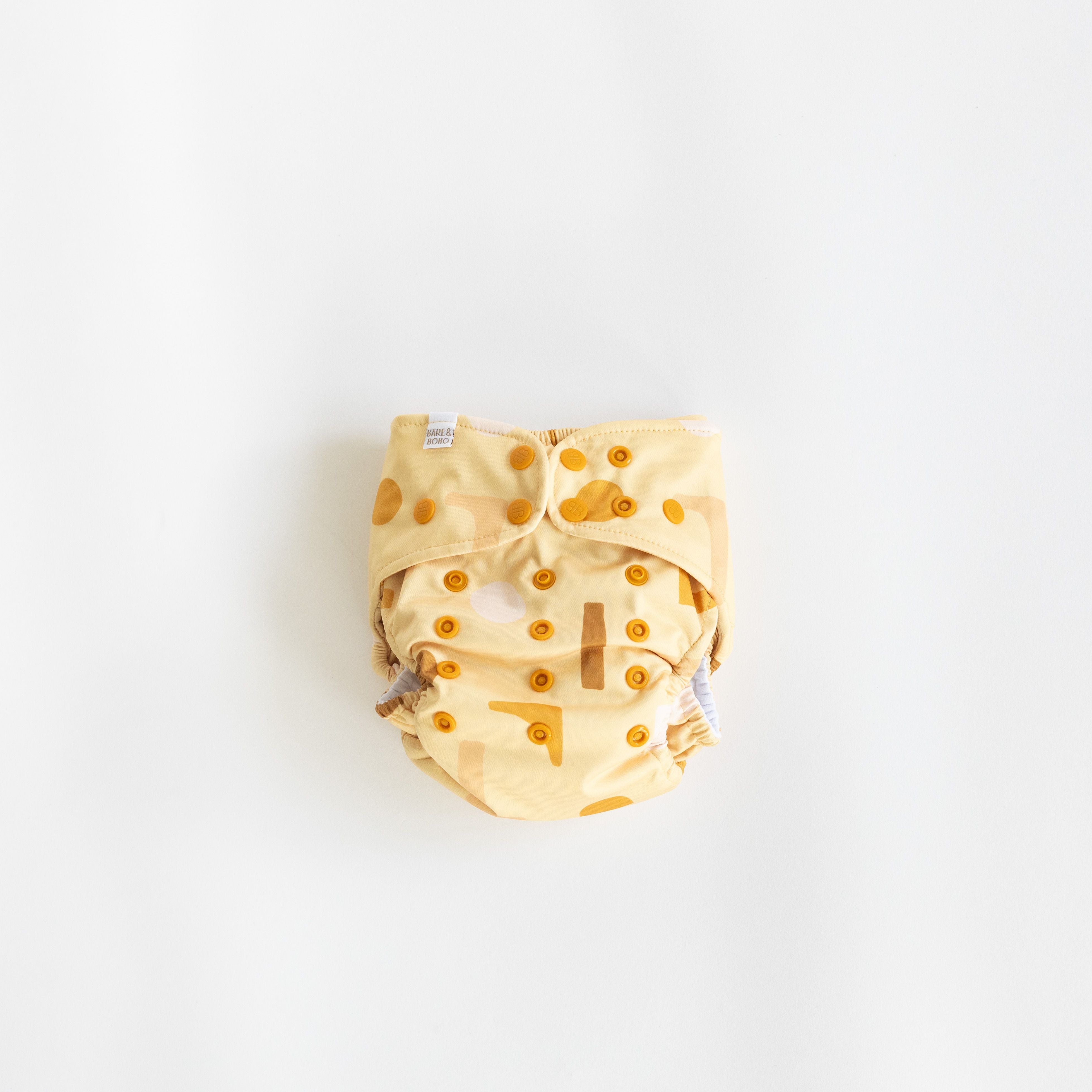 Introducing our Soft Cover Reusable Cloth Nappy Set - the eco-friendly and convenient choice for modern parents who prioritize sustainability without compromising on quality and comfort. Our Soft Cover Nappy 2.0, is our comfort range, designed with providing a luxe feel for baby. Featuring soft lining, that is a wonderful alternative to our Flexi Nappy 2.0 that is designed moreso with efficiency and cost effectiveness in mind. Each One Size nappy set includes; * 1x Soft Nappy Cover *New and Improved! * 1x 4-Layer Bamboo Insert PLUS inbuilt Stay-Dry lining *Now thicker for extra absorption! * 1x 4-Layer Bamboo Booster PLUS inbuilt Stay-Dry lining Crafted with utmost care and attention to detail, our Soft Cover Nappy Set offers an unparalleled blend of functionality, style, and environmental responsibility. Every nappy features artwork, designed by renowned artists. Designed for weights 3.5 - 18kg. Need Smaller? Grab a Newborn nappy set.
